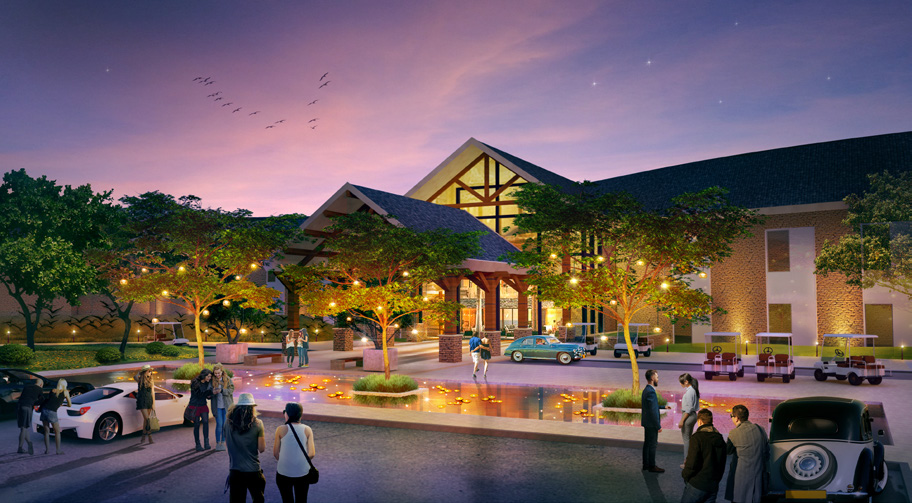 A hotel redevelopment in Dublin, Ireland, designed to meet the rising demand of visitors. The project restores the old hotel with a refreshed façade and new amenities, including a welcoming arrival area with water features, landscaping, and accent lighting. It also introduces exclusive family villas with meadow views and a water jetty, creating a vibrant waterfront destination.